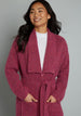 So plush and actually quite stylish. this robe coat from our ModCloth namesake label will make you welcome chilly weather with open arms! The mid-length style is a lesson in comfort with a violet-red knit that is subtly bespeckled with blue. green and yellow. and the fluffy knit fabric provides warmth no matter the weather. Designed with an oversize fit in mind. the coat works more like a blanket you can wear in public with an exaggerated shawl collar and a tie-waist you can cinch for a more defined silhouette.
