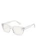 A modern square frame with subtle silver accents that elevate your everyday look. Crafted from lightweight polycarbonate. these glasses filter blue light to keep your eyes protected through work. study. and screen time.