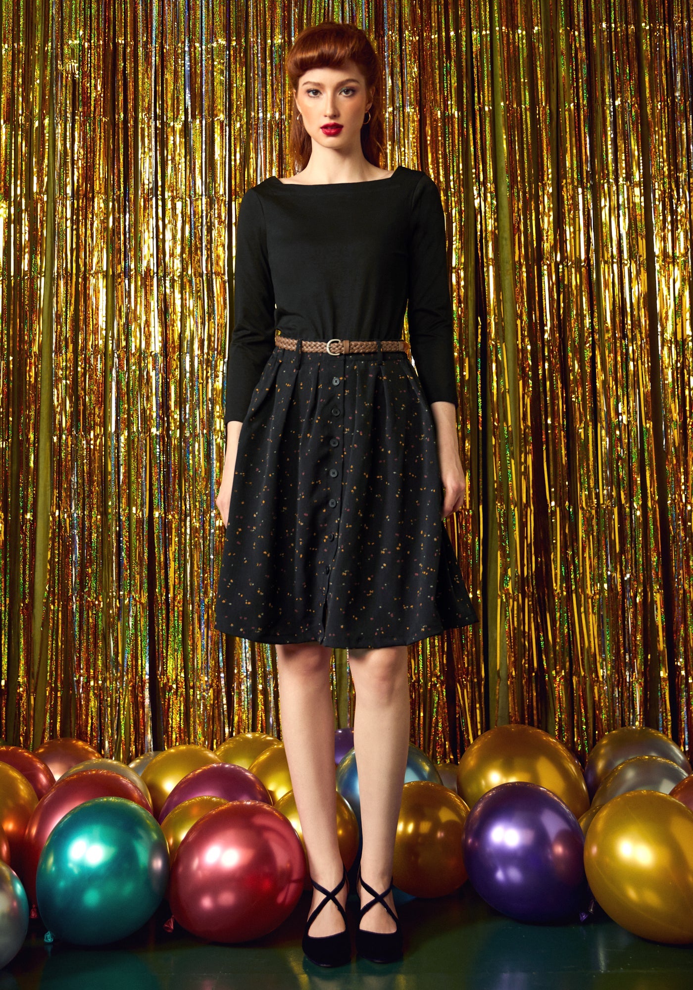 Model Measurements: Height 5'5"/Bust 34"/Waist 24"/Hips 36"
